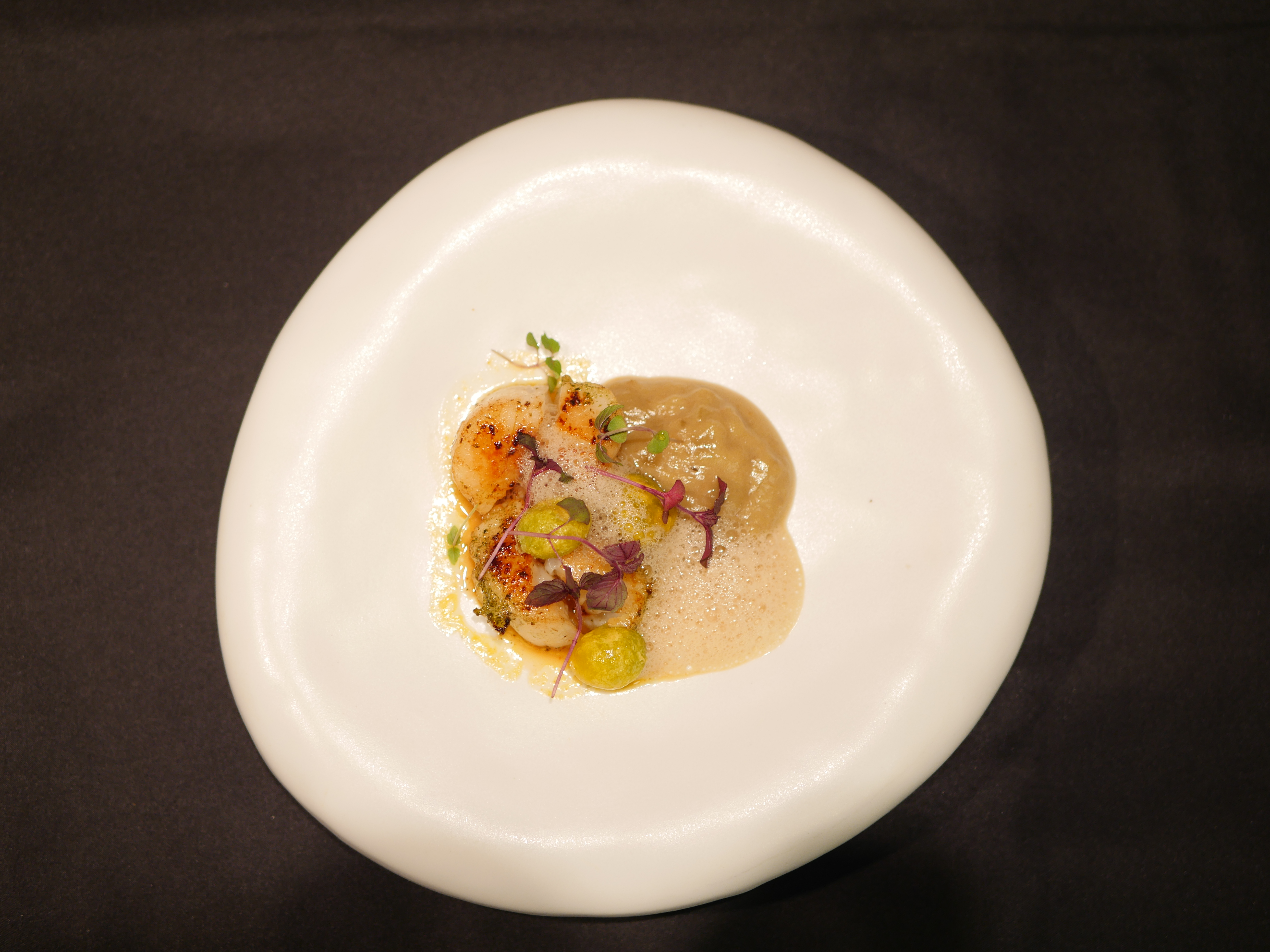 思い思いのイカ(アオリイカ、コウイカ、ケンサキイカ)うるい、こごみ、タラの芽ふきのとうのピュレ太白おぼろ昆布の…