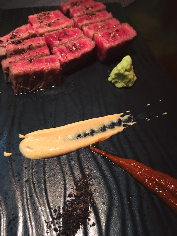 和牛に関しては、当店は、高温の鉄板で表面だけを香ばしく焼き上げて、内外の食感の違いを感じてもらえるように調理しています。